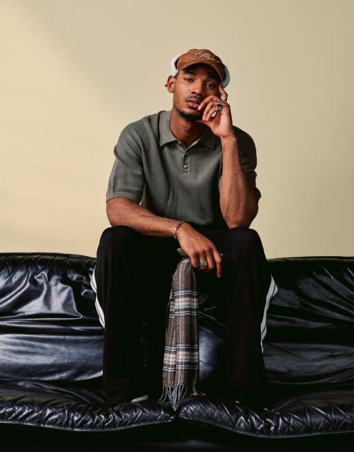 ASOS DESIGN – Kakifärgad, lättstickad pikétröja i bomull med avslappnad passform