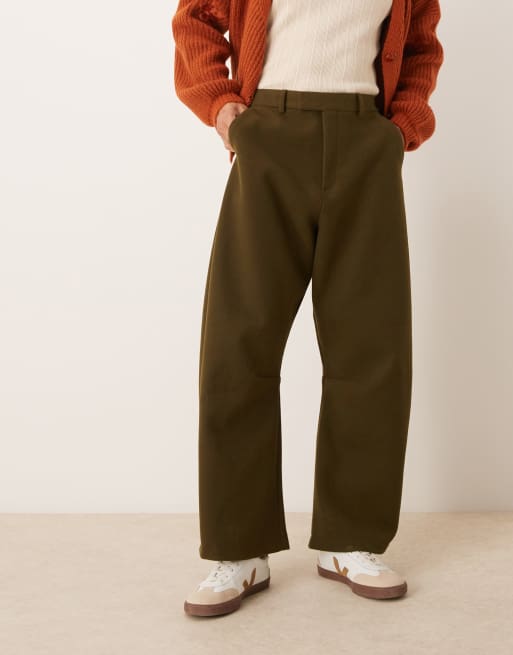 ASOS DESIGN – Kakifärgade finbyxor med barrelben