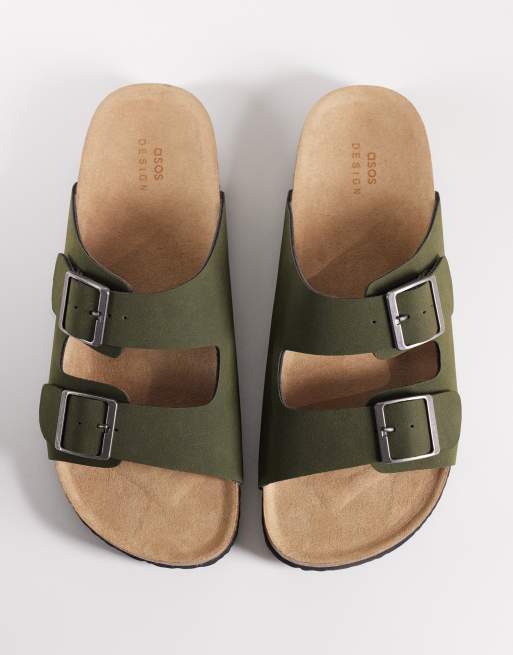 ASOS DESIGN – Kakifärgade sandaler med två remmar och korksula