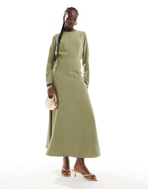 ASOS DESIGN – Kakifärgadk maxiklänning med hög krage och asymmetrisk söm