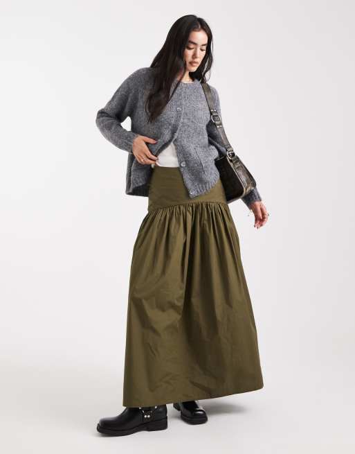 ASOS DESIGN – Kakigrön maxikjol med låg midja