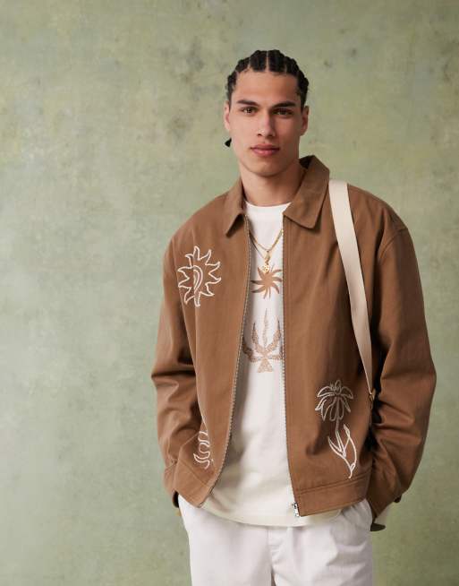 ASOS DESIGN – Kamelfärgad harrington-jacka i oversize med broderi