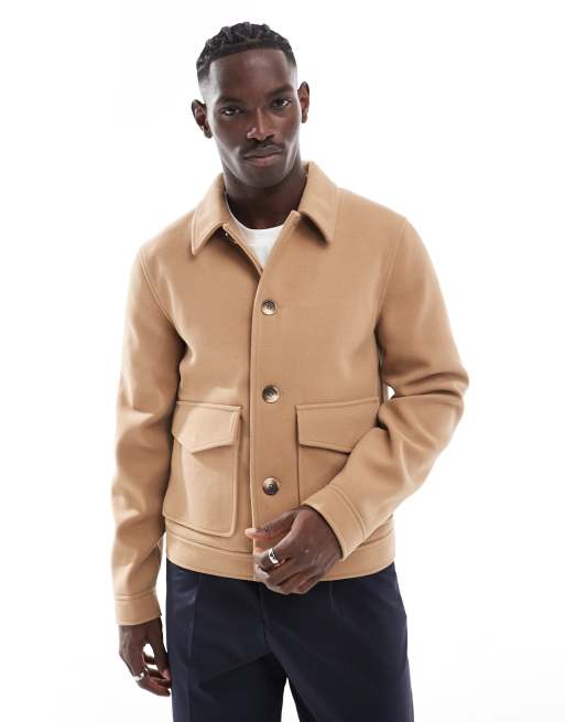 ASOS DESIGN – Kamelfärgad Harrington-jacka i yllestil med ficka