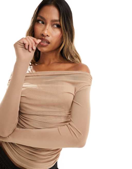 ASOS DESIGN – Kamelfärgad topp med bara axlar och rynkade detaljer
