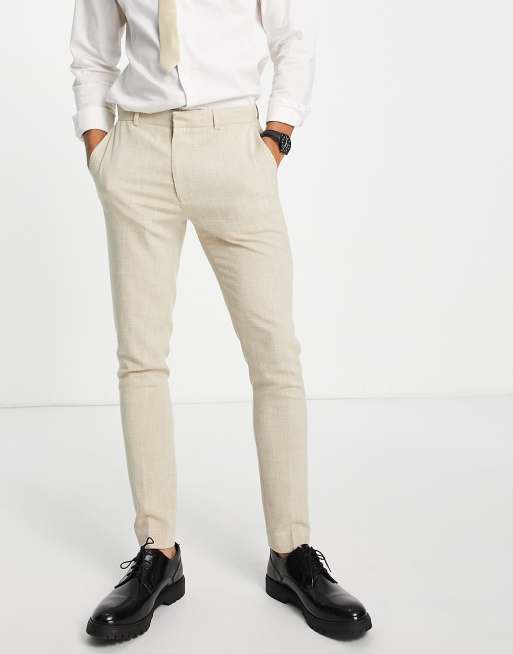 ASOS DESIGN – Kamelfärgade kostymbyxor i extra skinny passform med crosshatch-mönster