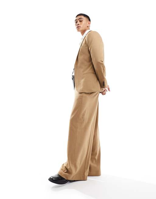 ASOS DESIGN – Kamelfärgade kostymbyxor med extremt vida ben och mikrostruktur