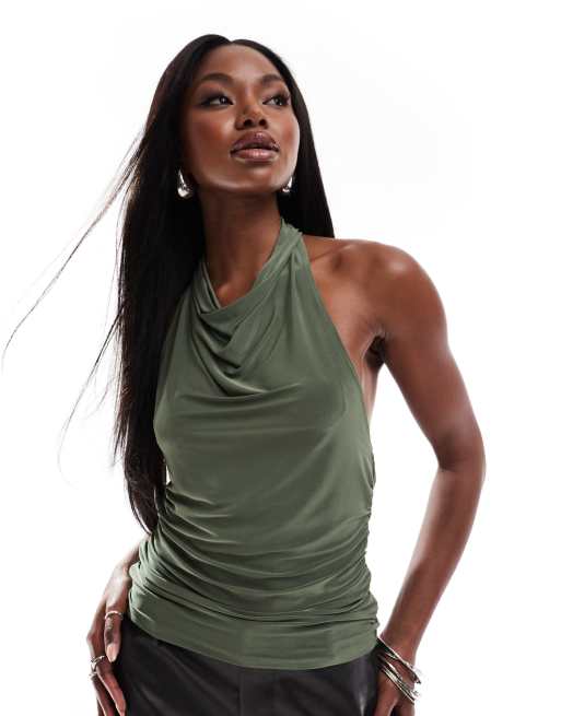 ASOS DESIGN – Khakifärgad, åtsmitande topp med draperad ringning