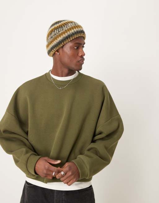 ASOS DESIGN – Khakifärgad, kort sweatshirt i extra oversize