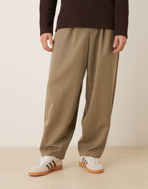 ASOS DESIGN – Khakifärgade finbyxor med vida barrelben och veck