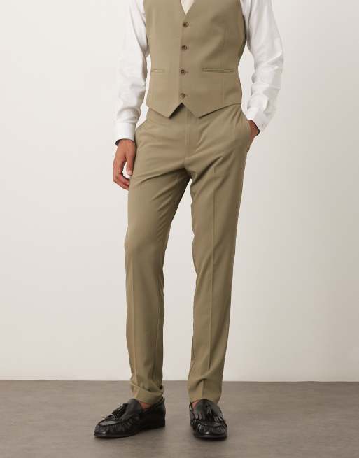 ASOS DESIGN – Khakifärgade kostymbyxor med extra smal passform