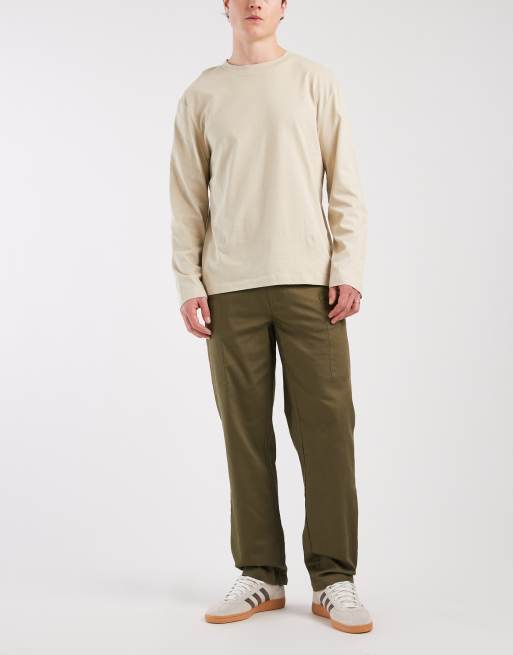 ASOS DESIGN – Khakifärgade, raka cargobyxor i slubbvävd twill