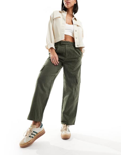 ASOS DESIGN – Khakifärgade, randiga cargobyxor med vida, avsmalnande ben