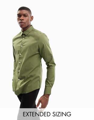 ASOS DESIGN – Khakigrön, stretchig skjorta med smal passform