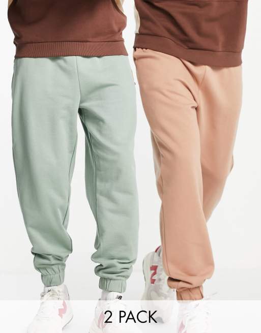 ASOS DESIGN – Khakigröna/bruna mjukisbyxor i oversize, 2-pack - MULTI