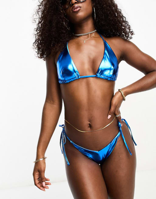 ASOS DESIGN – Klarblå trekantsbikini med metallisk design