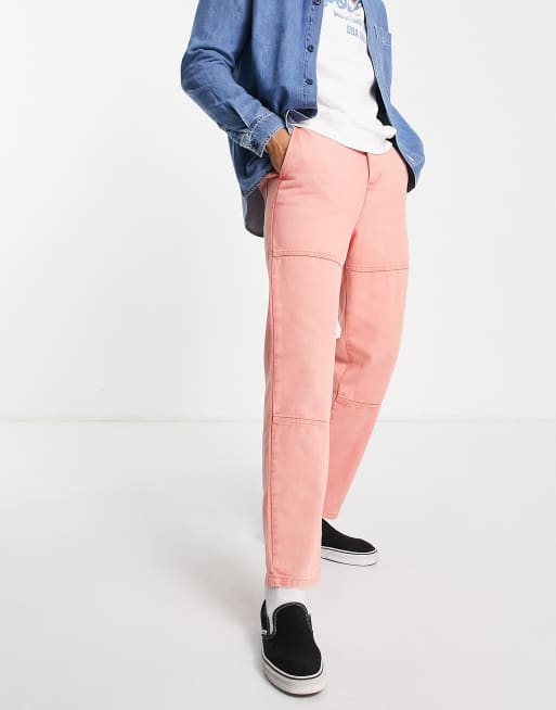 ASOS DESIGN – Korallfärgade snickarbyxor i skaterstil