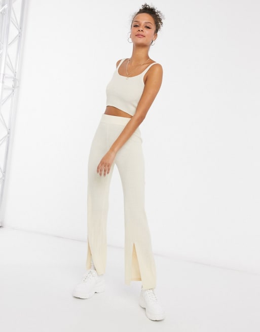 ASOS DESIGN – Krämfärgat, stickat set med linne, kofta och byxor