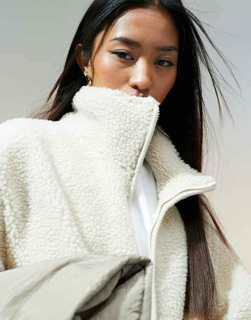 ASOS DESIGN – Krämvit fleecetröja i teddy med dragkedja