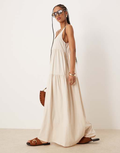 ASOS DESIGN – Krämvit, panelsydd maxiklänning i trapetsmodell med djup ringning