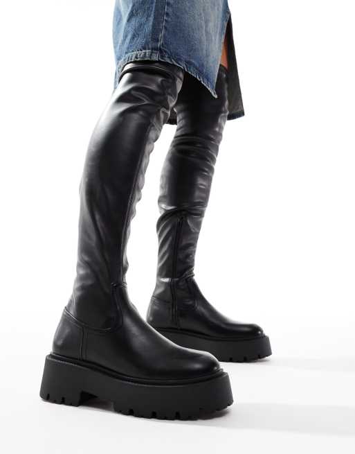 ASOS DESIGN – Kristen – Svarta, grova, lårhöga stövlar
