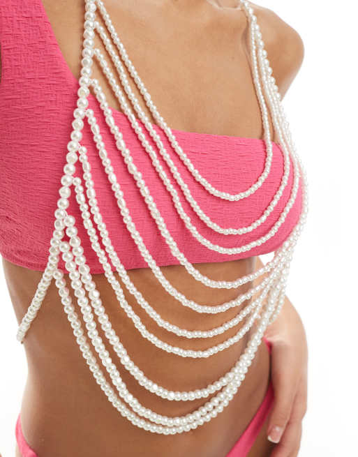 ASOS DESIGN – Kroppssmycke med flera rader med olika stora färskvattenspärleimitationer
