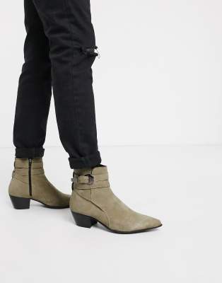 ASOS DESIGN – kubanska chelseaboots i stenfärgad mocka med klack