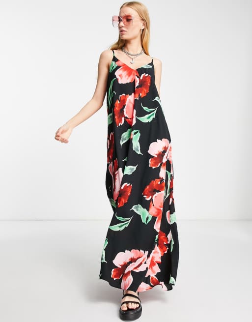 ASOS DESIGN – Lång a-linjeformad slipklänning med stora blommor