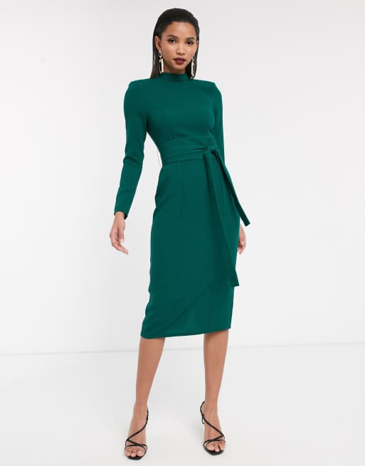 ASOS DESIGN – Långärmad midiklänning med obi-skärp