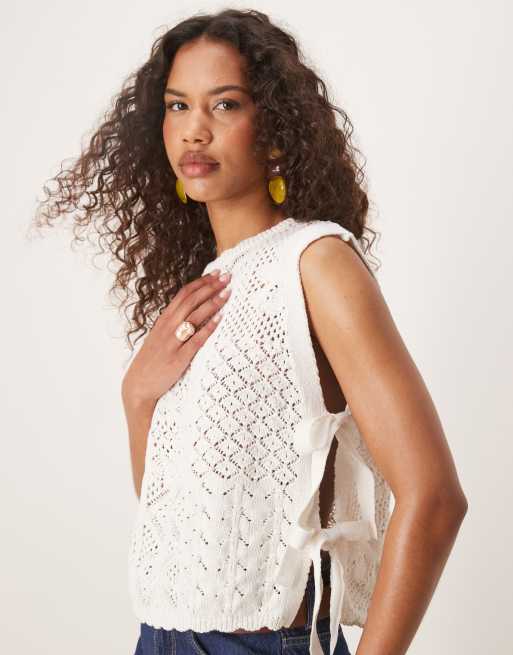ASOS DESIGN – Lappmönstrat, stickat linne med knytning i sidan