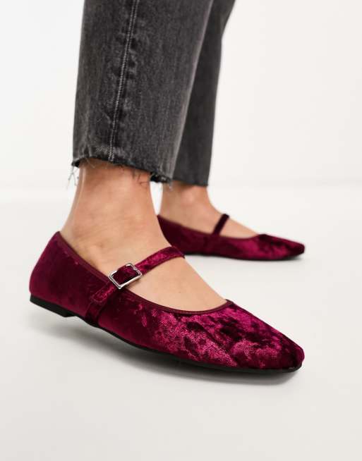 ASOS DESIGN – League – Vinröda ballerinaskor i sammet och Mary Jane-stil