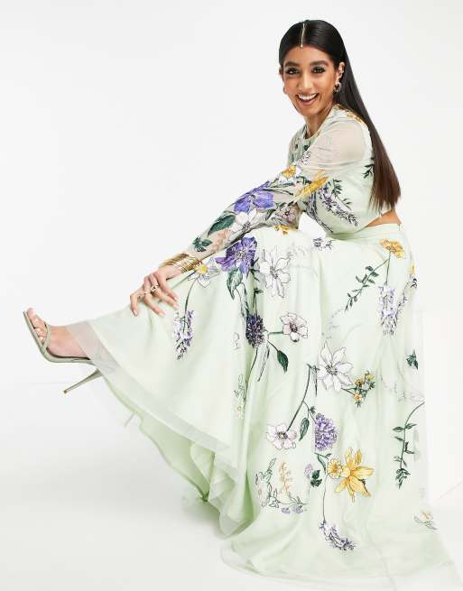 ASOS DESIGN – Lehenga – Maxikjol med blombroderi