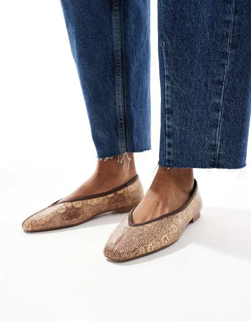 ASOS DESIGN – Leni – Ödleskinnsmönstrade ballerinaskor