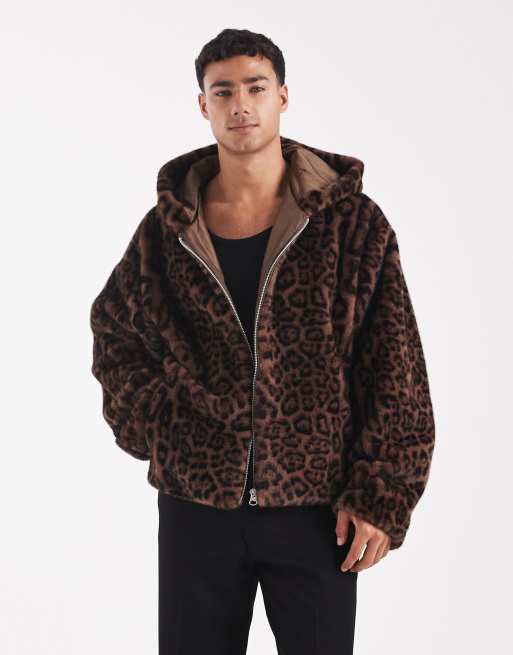 ASOS DESIGN – Leopardmönstrad jacka i oversize och fuskpäls med huva