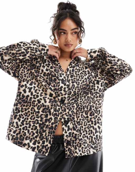 ASOS DESIGN – Leopardmönstrad, lång kofta i kraftigt loopback-material