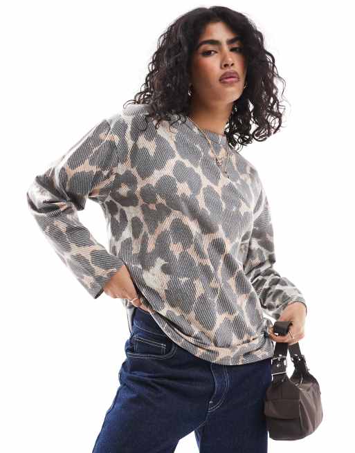ASOS DESIGN – Leopardmönstrad t-shirt i skatermodell med långa ärmar