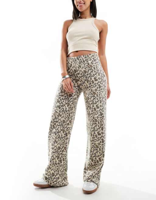 ASOS DESIGN – Leopardmönstrade, mjuka byxor med vida ben, del av set
