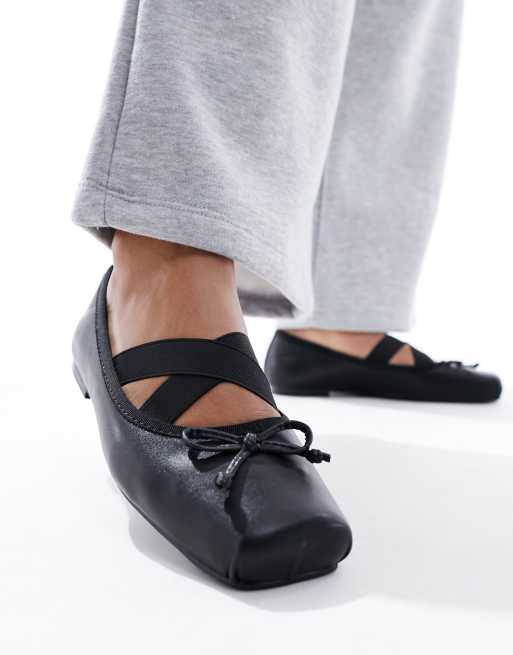 ASOS DESIGN – Leverage – Svarta ballerinaskor med fyrkantig tå