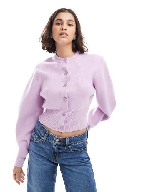 ASOS DESIGN – Lila kofta med struktur och axelvaddar