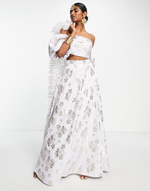 ASOS DESIGN – Lila lehenga-set i blommig jacquard - LILAC