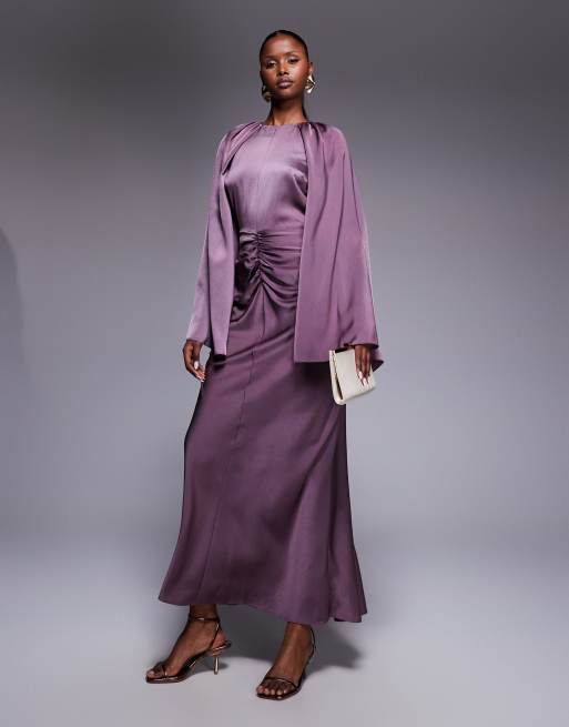 ASOS DESIGN – Lila maxiklänning i satin med långa ärmar och centrerad, rynkad kjol