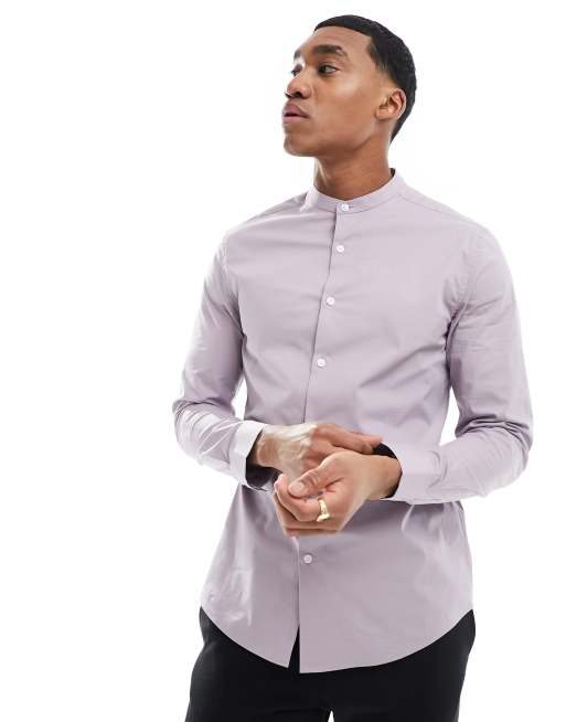 ASOS DESIGN – Lila skjorta med farfarskrage och smal passform