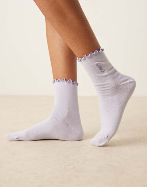 ASOS DESIGN – Lila strumpor med broderad sjöhäst