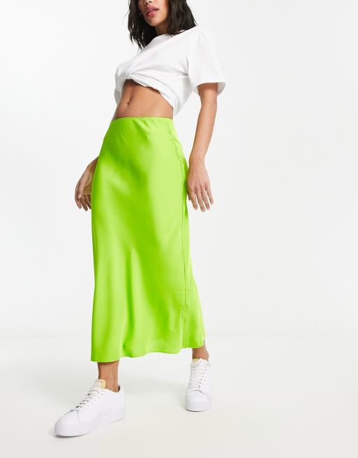 ASOS DESIGN – Limegrön, diagonalskuren midikjol i satin