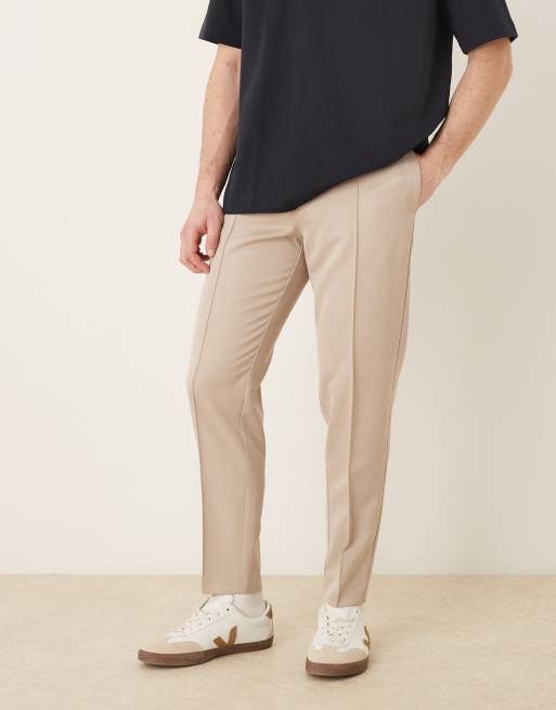 ASOS DESIGN – Ljusbeige, avsmalnande finbyxor med stråveck