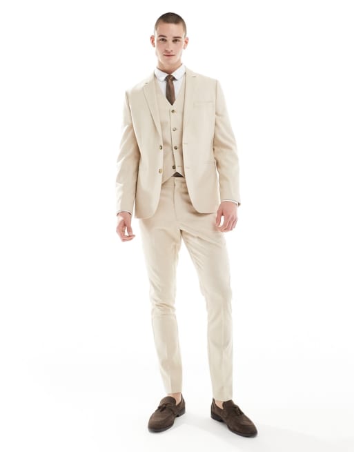 ASOS DESIGN – Ljusbeige bröllopskostym med extra smal passform