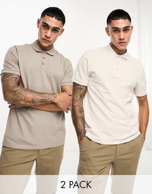 ASOS DESIGN – Ljusbeige och bruna, fina pikétröjor, 2-pack