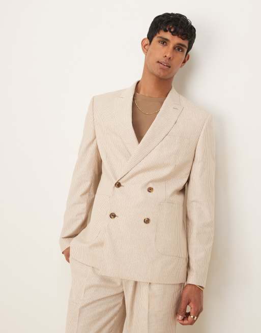 ASOS DESIGN – Ljusbeige, randig, smal kavaj i linnemix, del av kostym