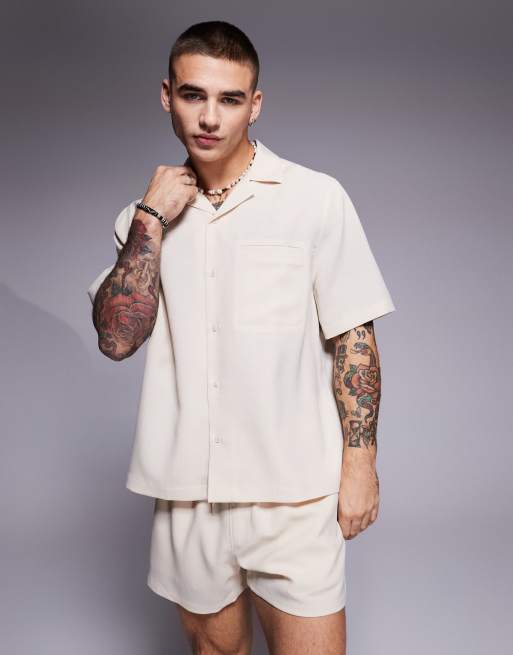 ASOS DESIGN – Ljusbeige skjorta i regular fit och linnestil med boxig passform, del av set