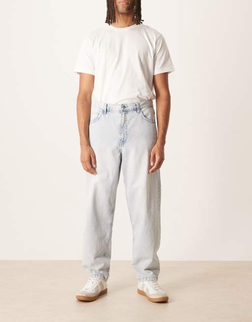 ASOS DESIGN – Ljusblå, blekta, lediga, raka jeans