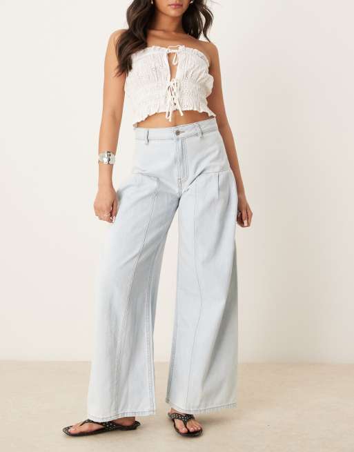 ASOS DESIGN – Ljusblå jeans med vida ben och veck